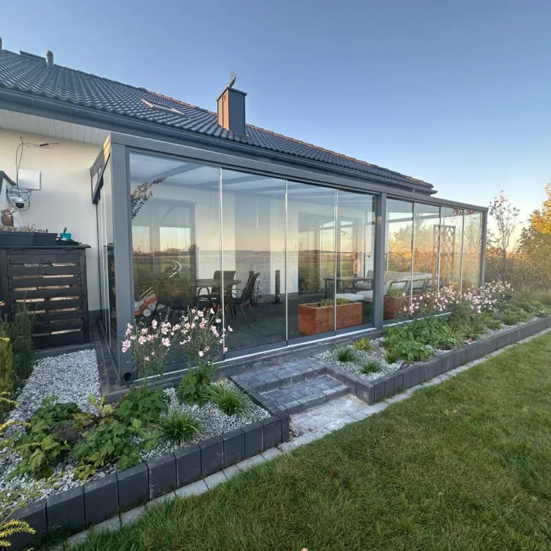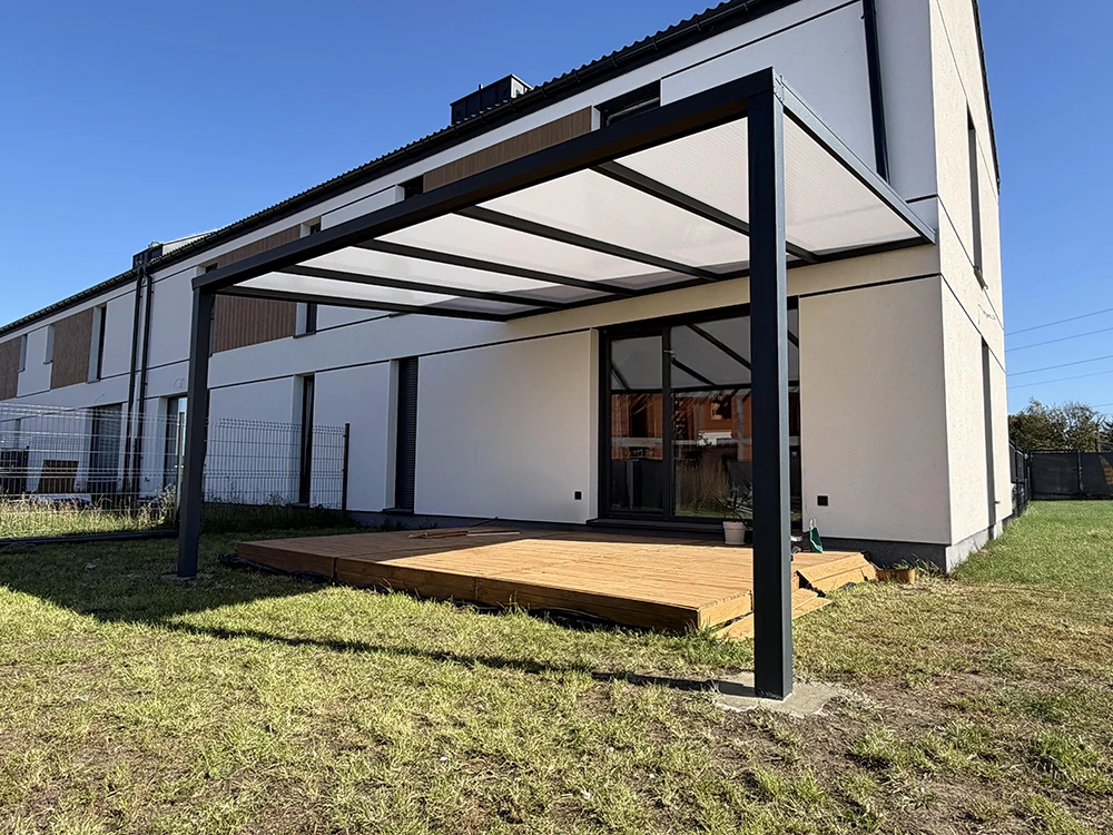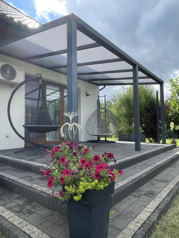 Szukasz zadaszenia tarasowego, które przetrwa dziesięciolecia? Zadaszenie PRO z poliwęglanem 16mm i ukrytym odwodnieniem to rozwiązanie premium dla wymagających. W przyszłości możesz je rozbudować do pełnego ogrodu letniego ze szklanymi ścianami i systemem przesuwnym.